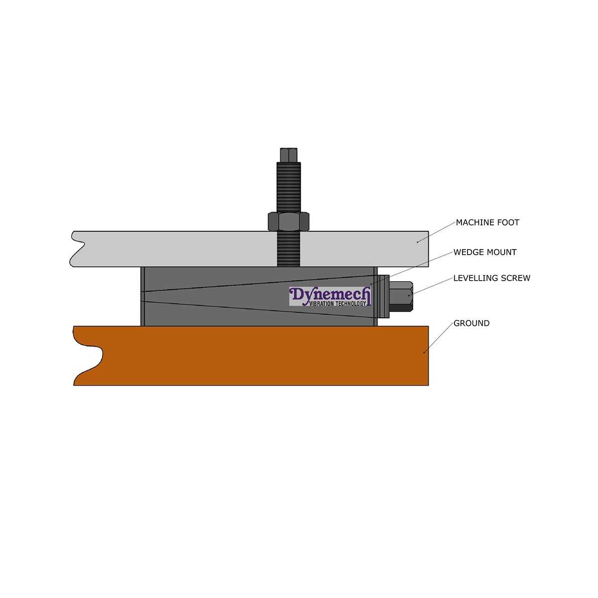 Dynemech Wedge mounts, Series DB are designed for industrial machine tools that require precision levelling, vibration reduction, and/or need to be firmly mounted with the isolator.