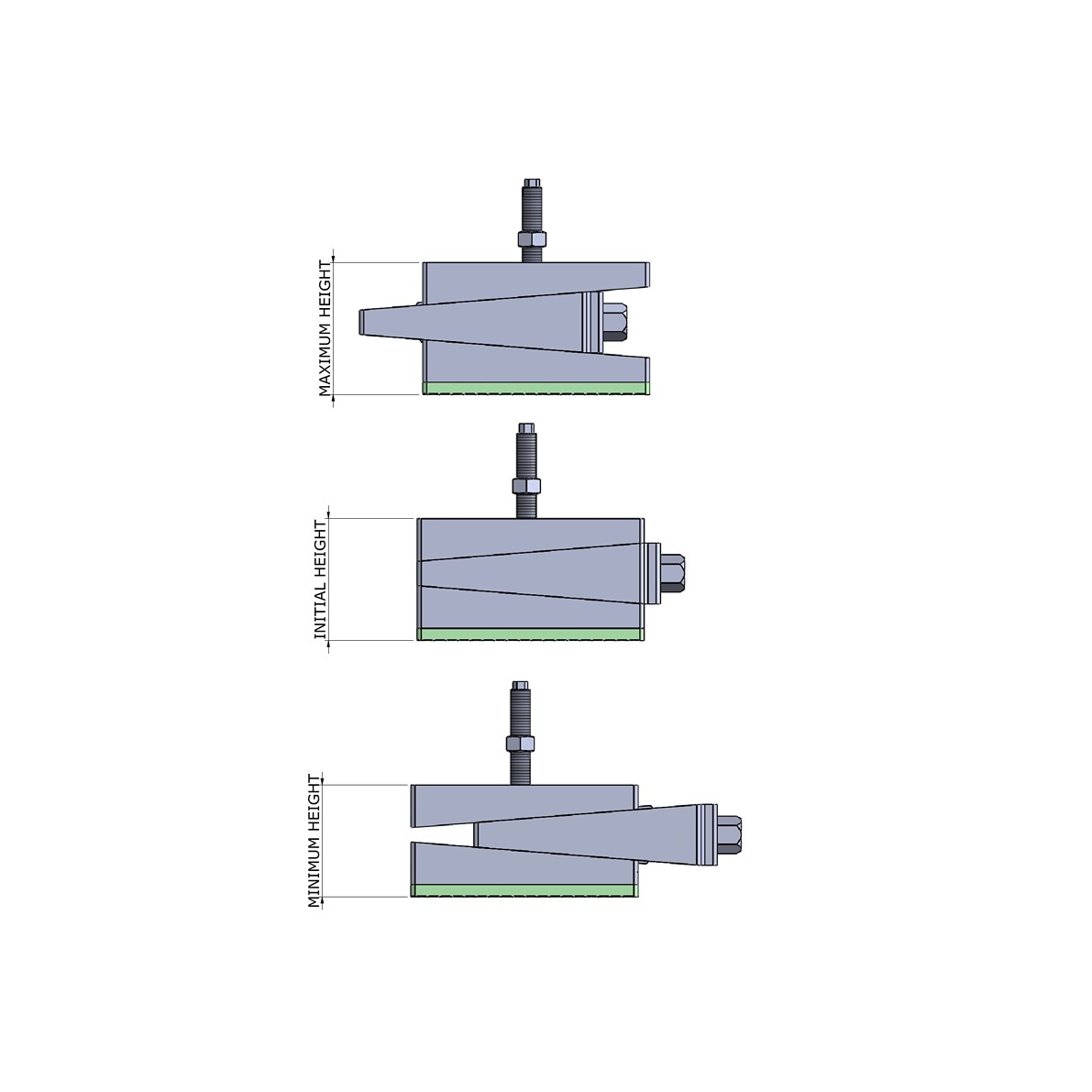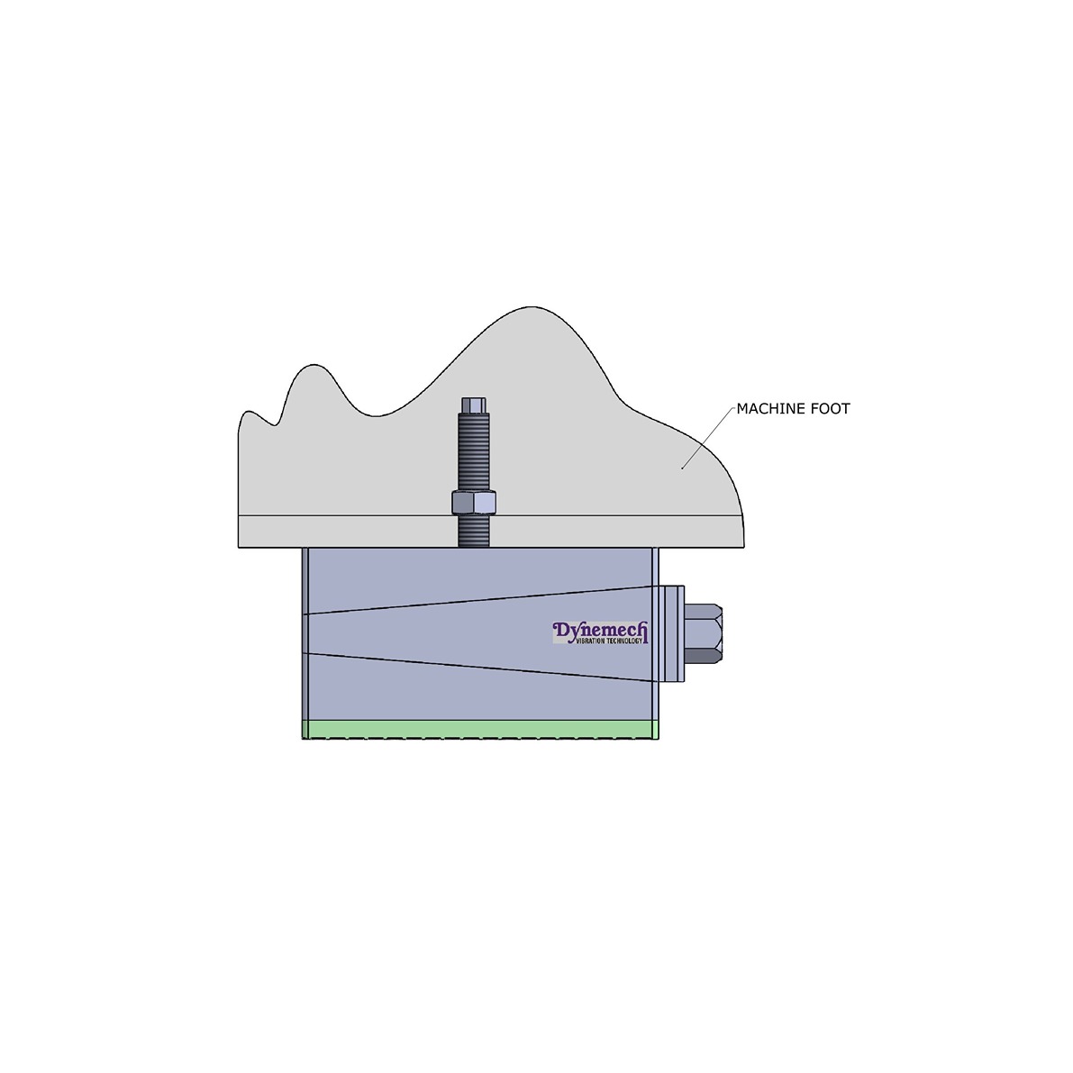Dynemech Wedge mounts, Series DBH mounts are sturdy in construction. Wedge mounts are bolted with the machine base. High levelling adjustment avoids the need of extra shims for installations on steep slope surfaces. DBPH has a height of 150mm to meet TPM requirements. Respective insulation plates are assembled to meet various applications.