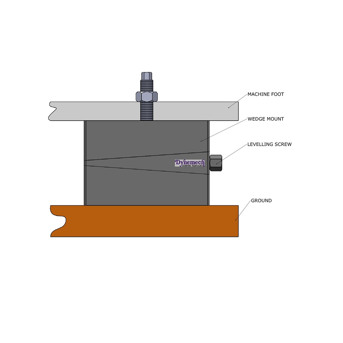 Dynemech Wedge mounts, Series DBO are designed for industrial machine tools that require precision levelling, vibration reduction, and/or need to be firmly mounted with the isolator.