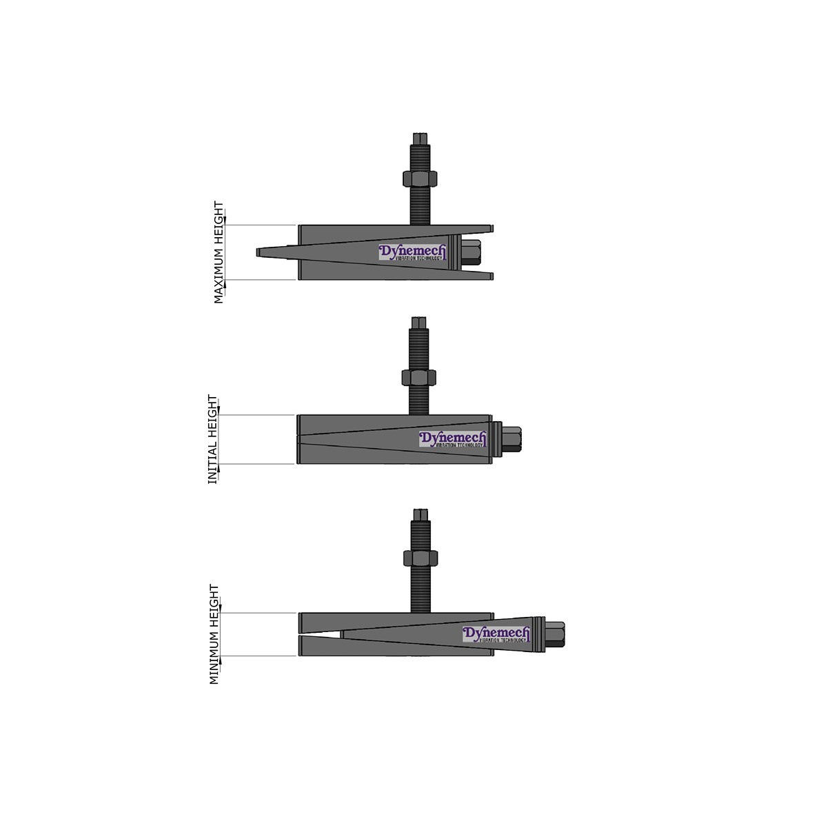 Dynemech Wedge mounts, Series DBP-100 have a height of 100mm at mean position to help proper cleaning and repairing under the machines, with specs similar to series DB.