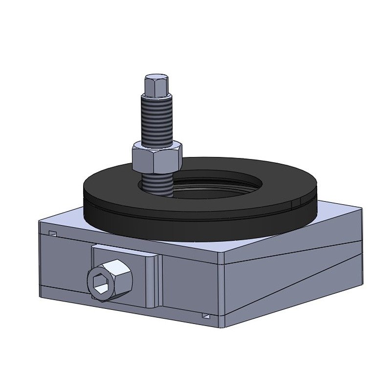 SPHERICAL POSITIONERS are designed to transmit the load of the machine to the ground through wedge mounts at 90 degree despite the angle difference between machine base and foundation. The pressure on the insulation plates remain even. thus, better alignment is possible. variations are available for free standing and bolt on machine bases either with or without insulation damping. Dynemech is open to the idea of developing Customer specific requirenments.