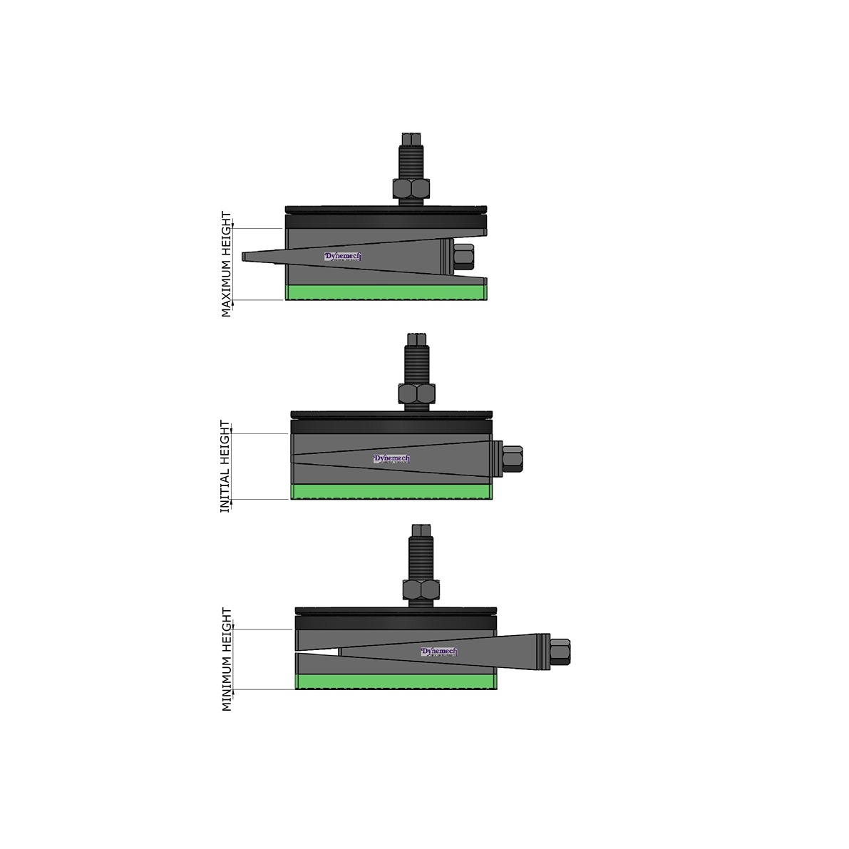 SPHERICAL POSITIONERS are designed to transmit the load of the machine to the ground through wedge mounts at 90 degree despite the angle difference between machine base and foundation. The pressure on the insulation plates remain even. thus, better alignment is possible. variations are available for free standing and bolt on machine bases either with or without insulation damping. Dynemech is open to the idea of developing Customer specific requirenments.