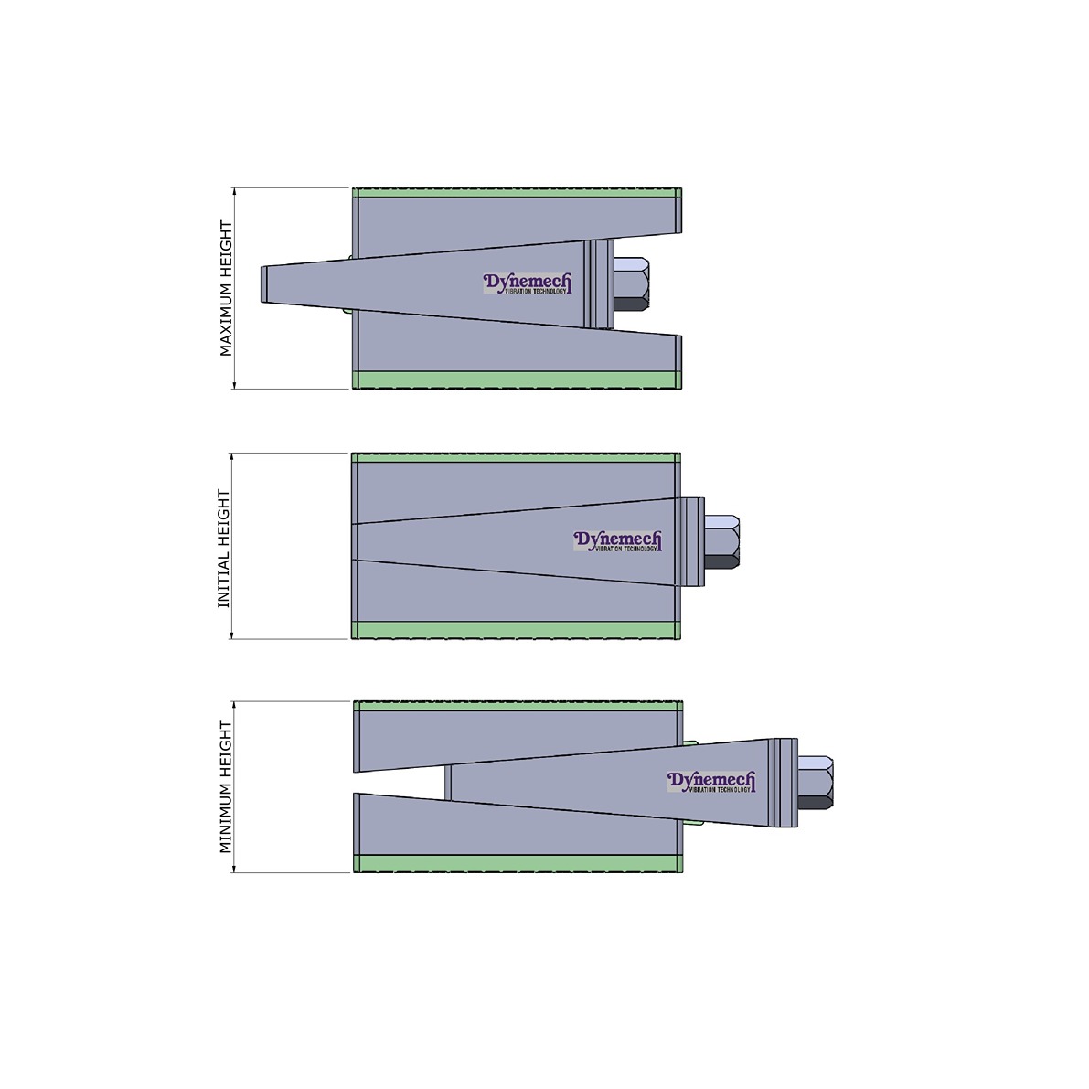 Dynemech Wedge Mounts, Series DFH are sturdy in construction and installed as free standing. They are designed for very heavy and long bedded machines. High levelling adjustment avoids the need of extra shims for installations on steep slope surfaces.