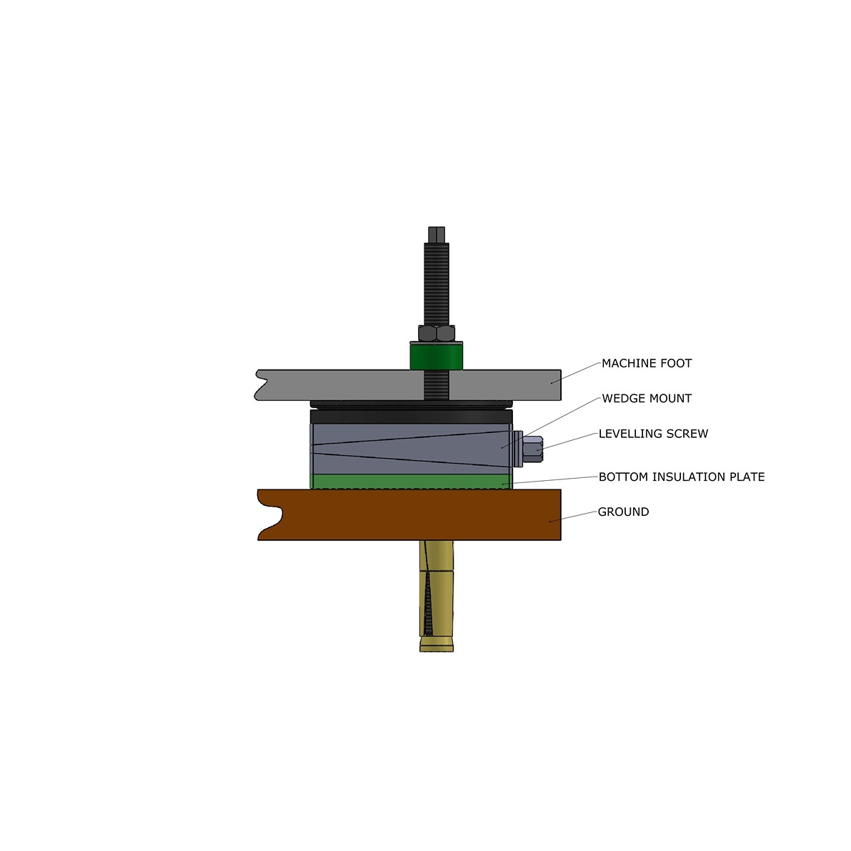 SPHERICAL POSITIONERS are designed to transmit the load of the machine to the ground through wedge mounts at 90 degree despite the angle difference between machine base and foundation. The pressure on the insulation plates remain even. thus, better alignment is possible. variations are available for free standing and bolt on machine bases either with or without insulation damping. Dynemech is open to the idea of developing Customer specific requirenments.